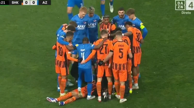 Assustador: Isaque do Shakhtar leva pancada no pescoço e fica imóvel