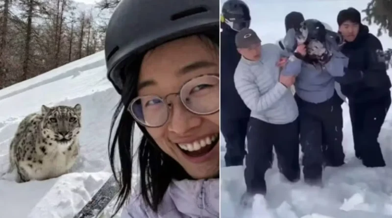 A turista atacada por um leopardo-das-neves no Geoparque Global da Unesco de Keketuohai, localizado em Funyun, na China, registrou momentos antes d…