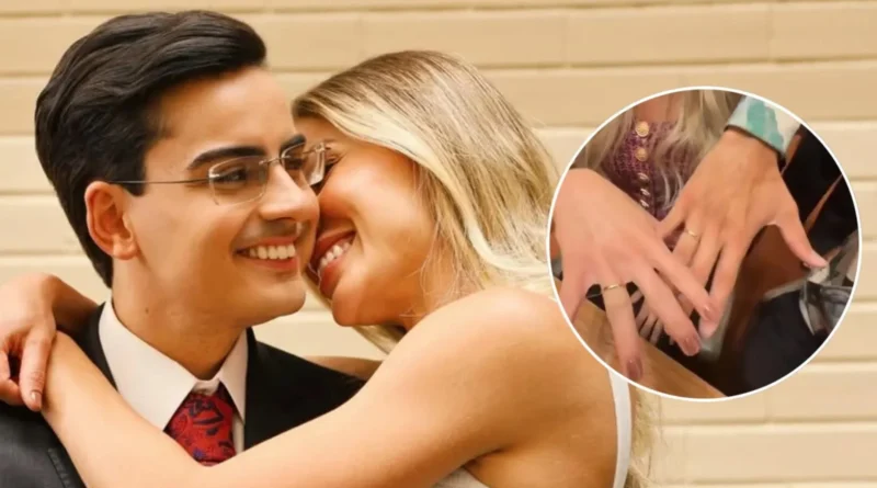 Dudu Camargo dá aliança de namoro a Saory Cardoso ao vivo
